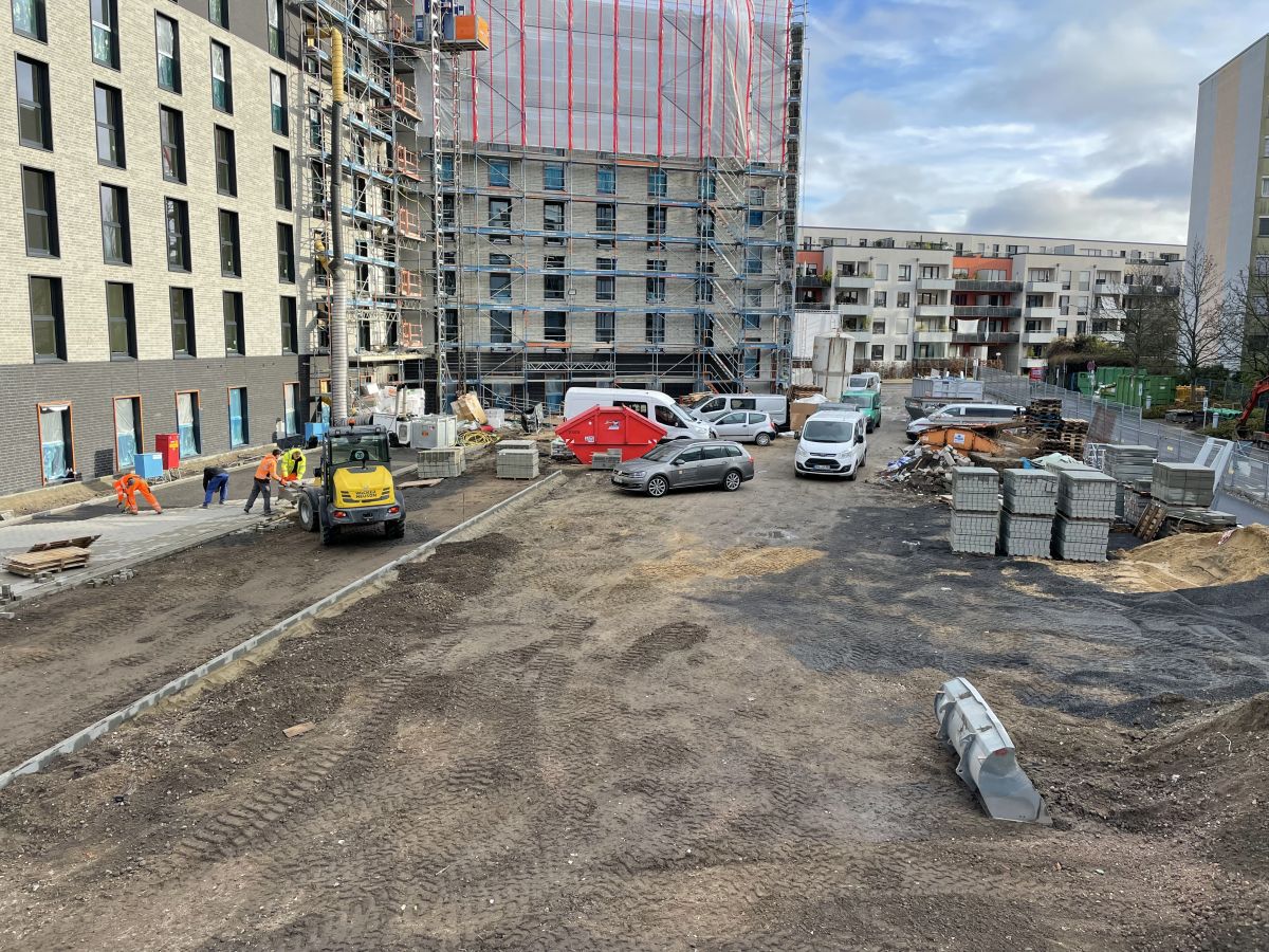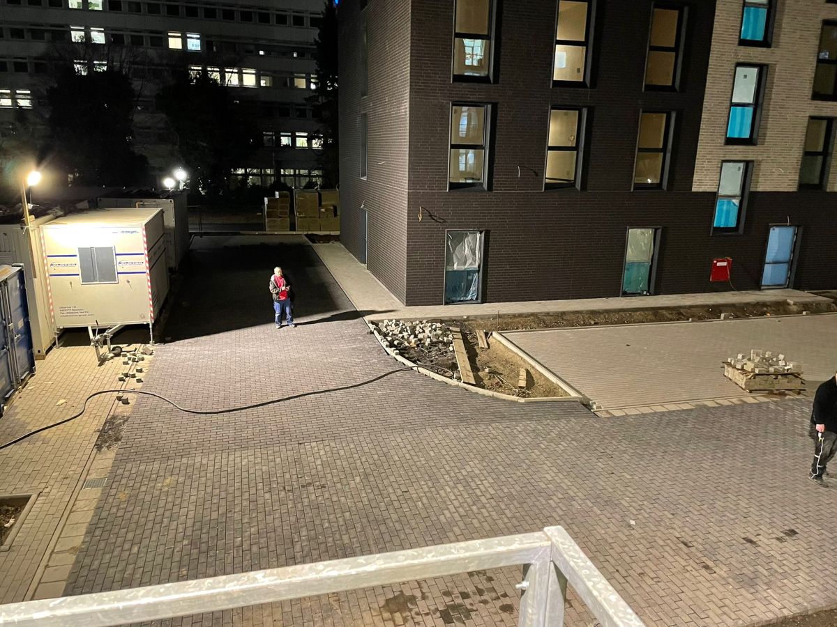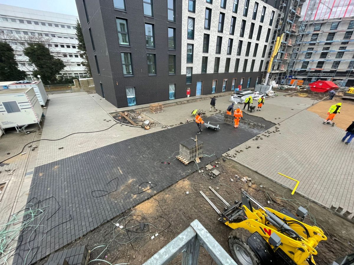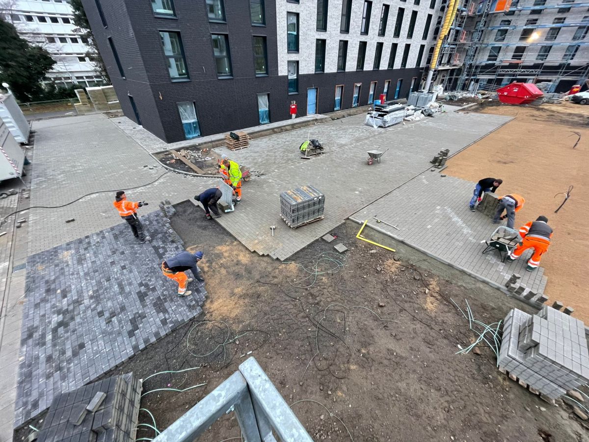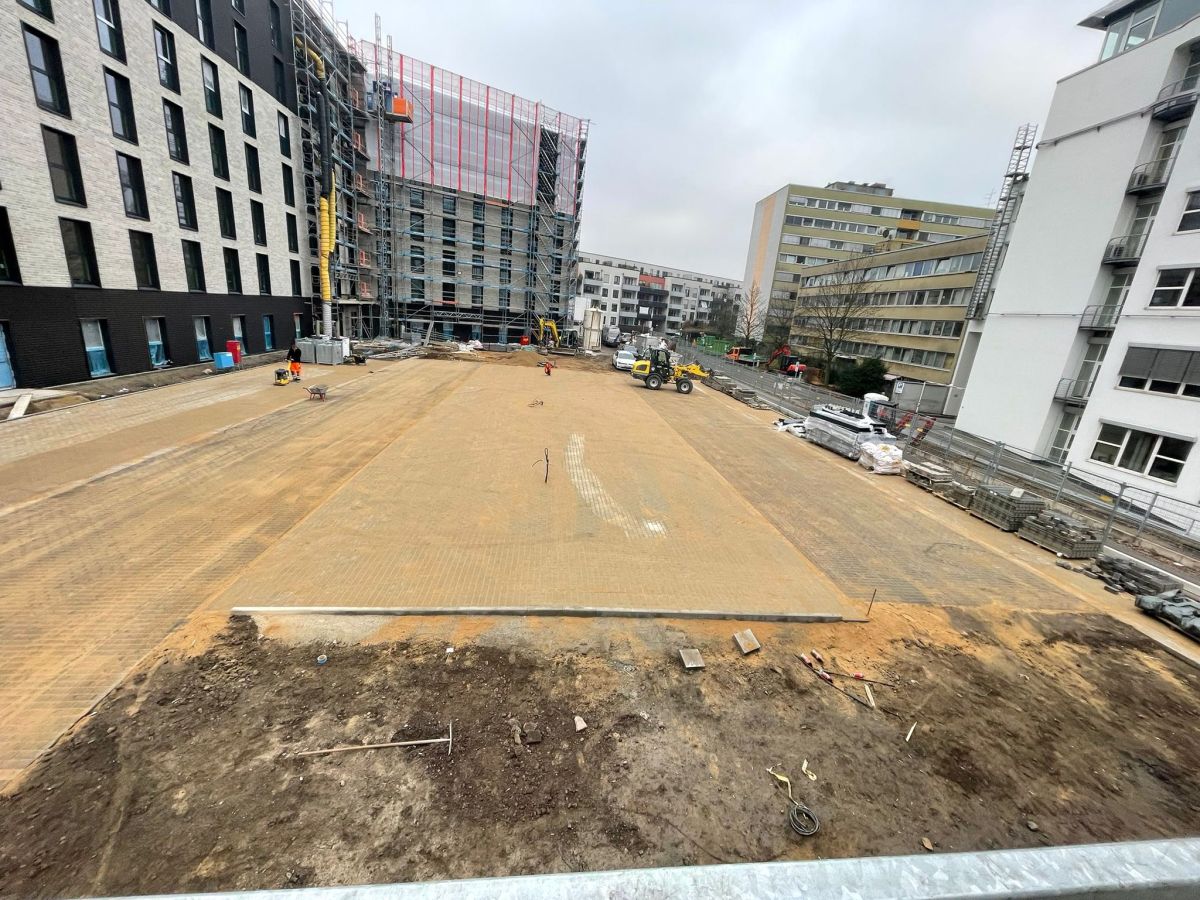 Bauvorhaben: B&B Hotel in KölnGewerk: Außenanlagen / PflasterarbeitenZeitraum: 2021